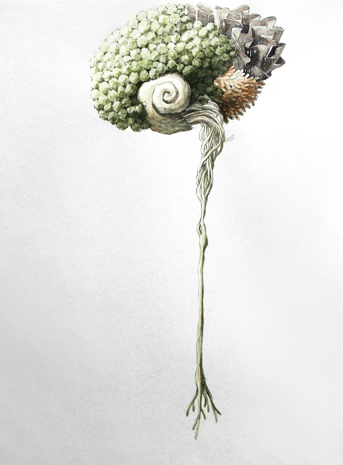 Pencil, Watercolor on Paper